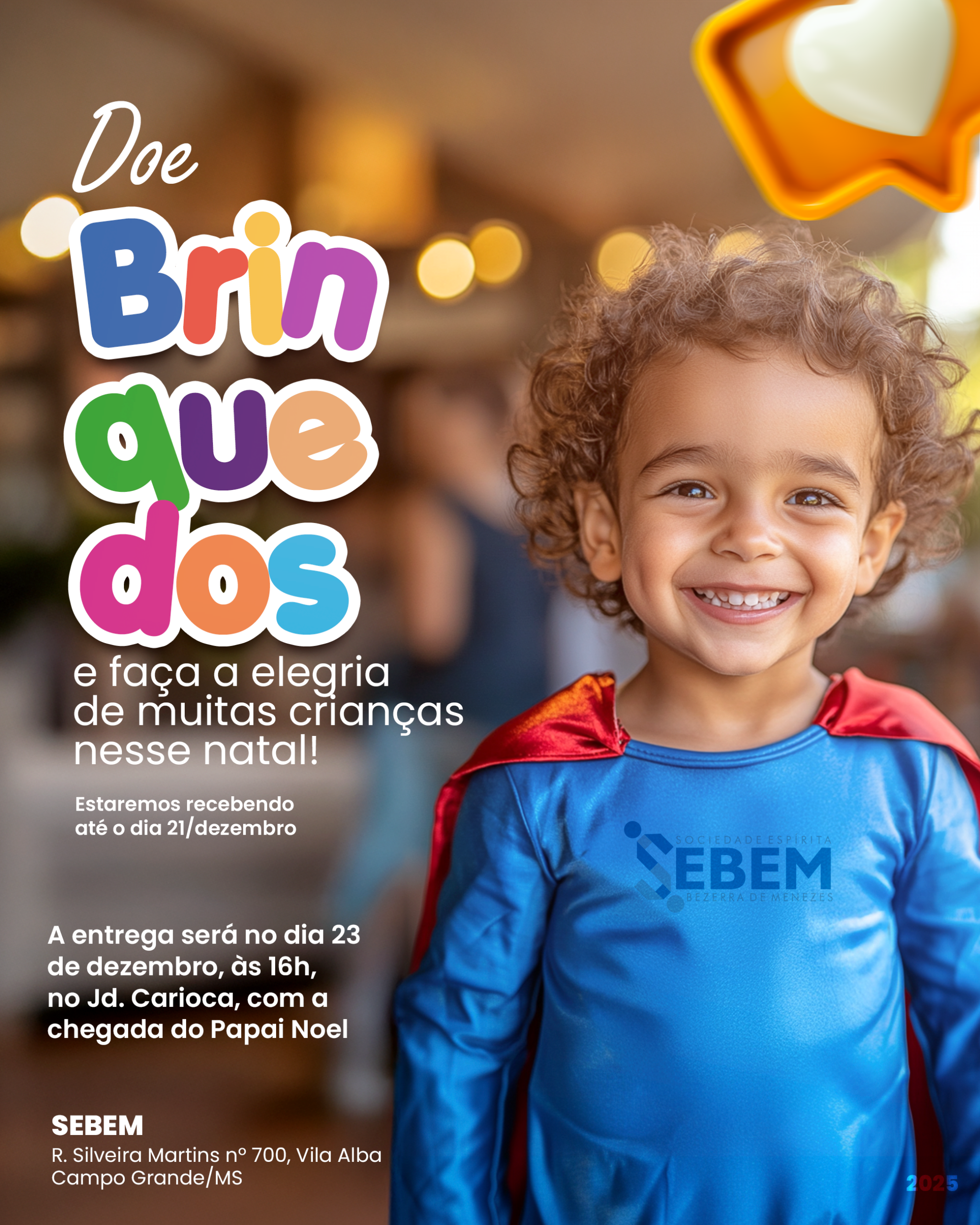 Desde o começo do mês de dezembro a SEBEM convidou os trabalhadores e frequentadores a participar da doação de brinquedos para crianças assistidas pelo Projeto no Jardim Carioca, periferia de Campo Grande.